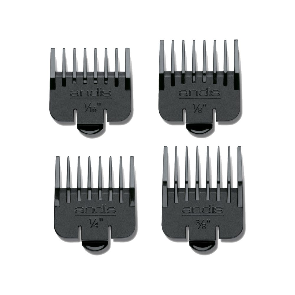 The Andis Outline 4-Piece Guide Set is best for safe, accurate clipper cutting. • 4-piece kit for versatility • Fits: GO, D-2 & D4D trimmer, • Sizes 0, 1, 2, 3 (1/16″, 1/8″, 1/4″ and 3/8″)