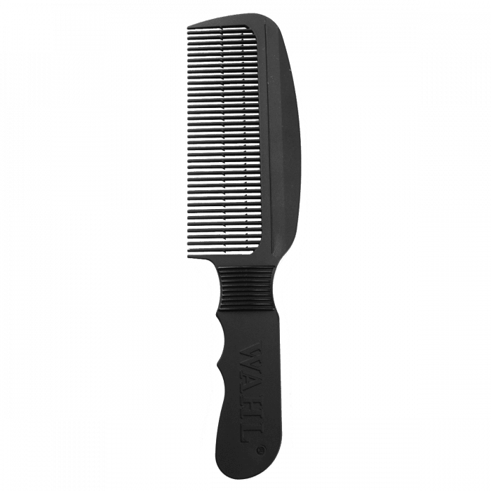 Take your cutting game to the next level with the new Wahl Flat Top Combs. Ergonomically designed for your comfort and control, the Wahl Flat Top Comb is perfect for creating flat tops, tapering, and clipper over comb techniques. Available in black (3329) and white (3329-100). WEAT Tip: use a lightly colored comb on dark hair and a darker colored comb on light hair in order to see contrast while cutting.